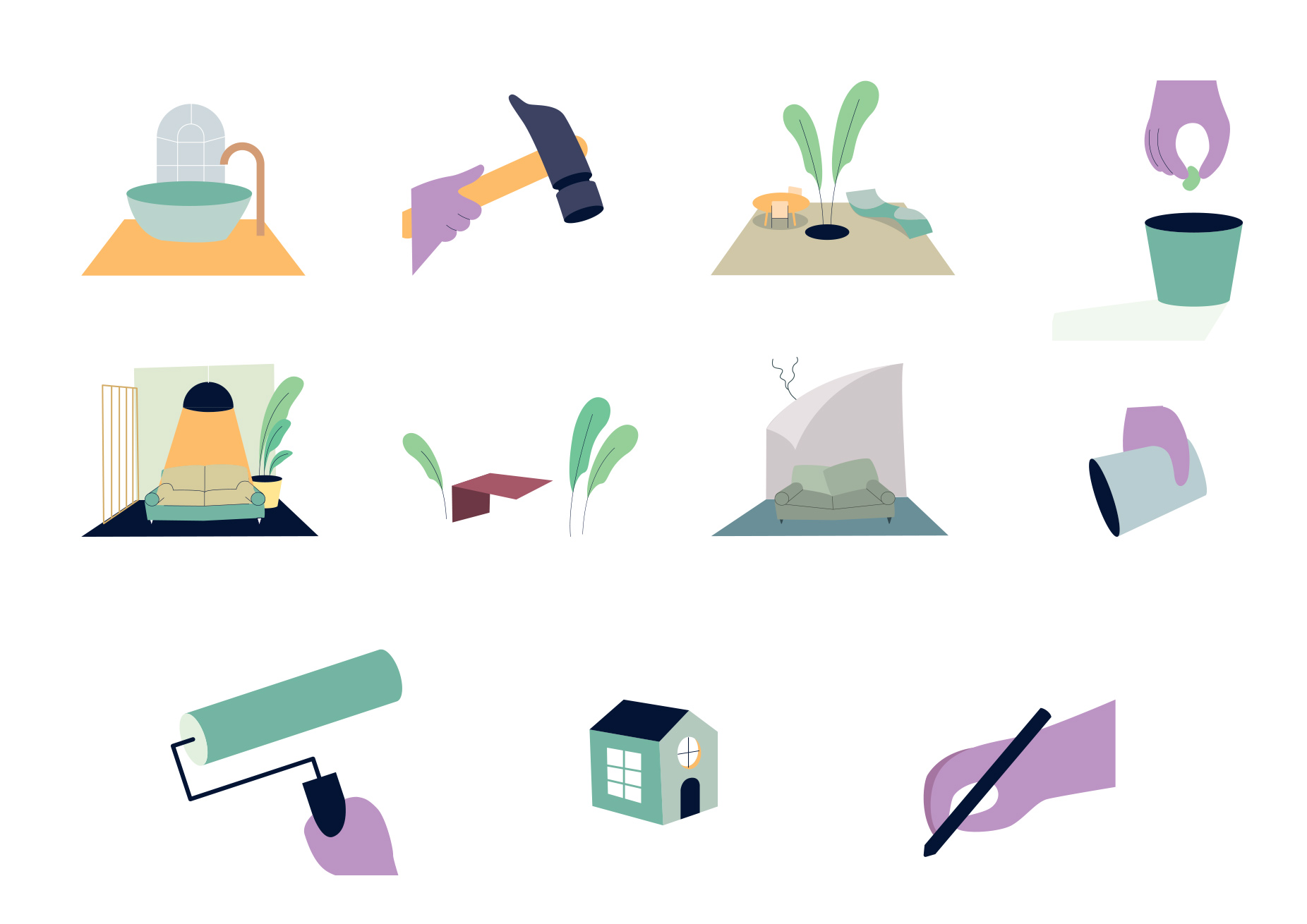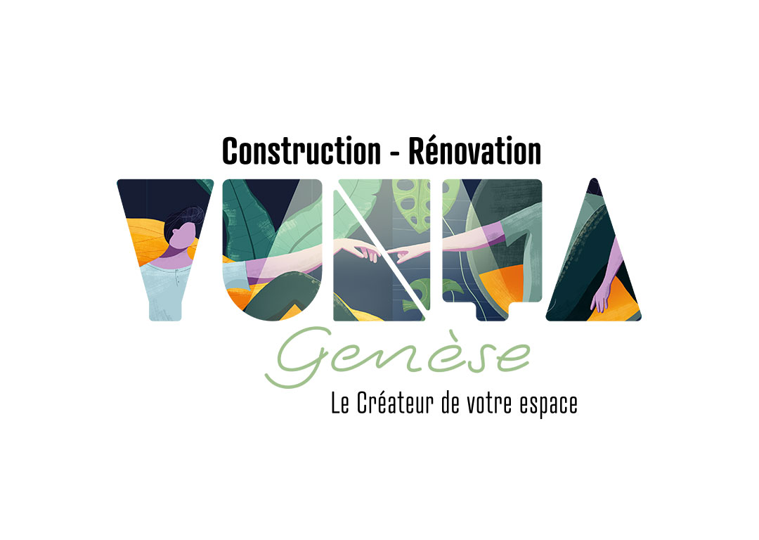 L’identité de Yunta Genèse a été conçue comme un système narratif : des illustrations mettent en scène des moments de vie dans différentes pièces, pour faire ressentir ce que la rénovation change vraiment au quotidien. Une illustration “signature”, clin d’œil à Michel-Ange, vient renforcer l’idée de création et de nouveau départ, en écho au mot Genèse. Plutôt qu’une palette couleur imposée, la marque joue sur un principe de variation : les illustrations s’incrustent dans le logo et ses déclinaisons, créant une identité vivante, modulable, et immédiatement reconnaissable.